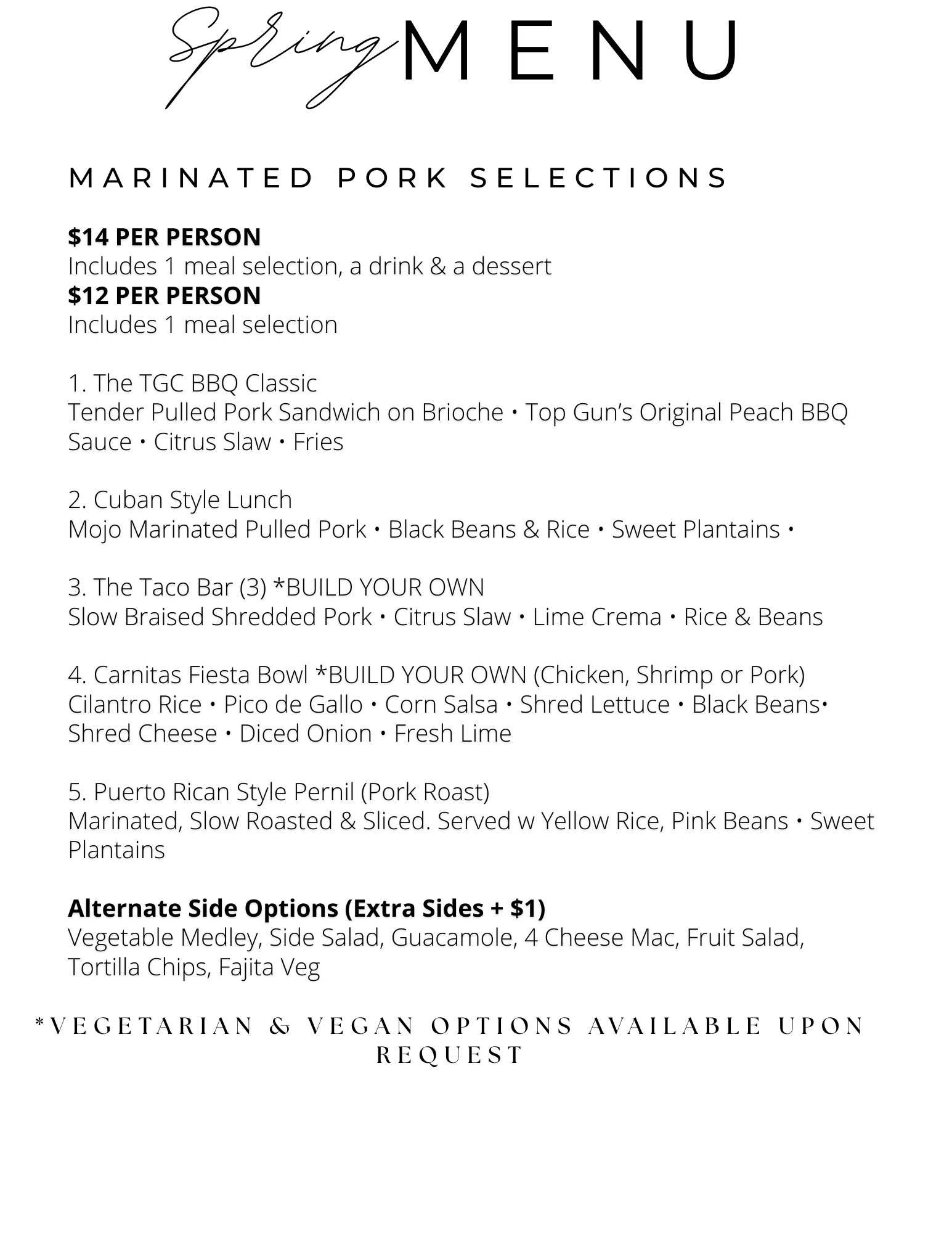 Boxed Individually or Buffet Style. 10 Person Minimum.